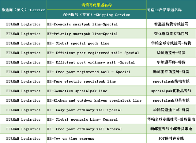 (1)选择HUAHAN Logistics + 非HH单号标记发货
