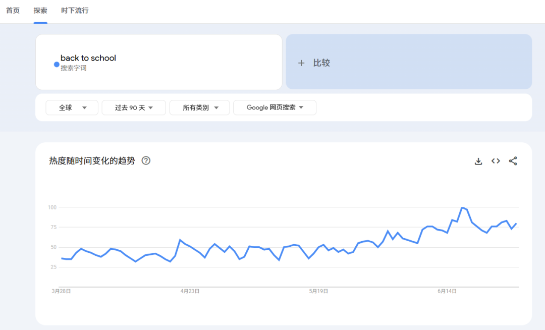 谷歌趋势显示,“back to school”(返校)一词在全美范围内的搜索热度呈现持续上升趋势,并在7月17日达到搜索热度顶峰。