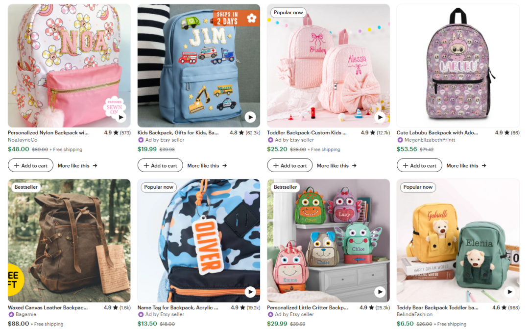 以主打个性化、手工定制商品的平台ESTY在返校季市场独树一帜。从7月起,消费者就开始为返校采购,ESTY 精准把握时机,迎合这一趋势。对于低龄学生,平台上充满童趣的服装、特色背包、创意文具等备受欢迎;针对大学生,独特的宿舍装饰品、个性化学习用品成为热门搜索项。