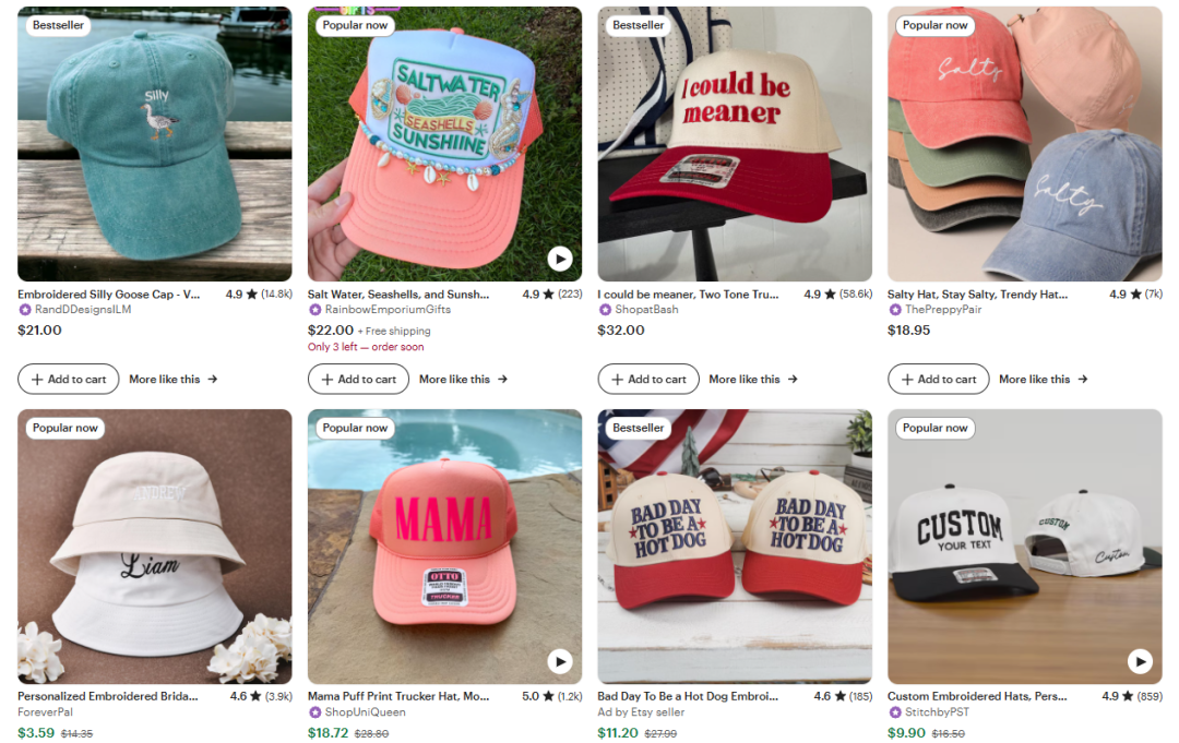 作为校园场景的高频刚需单品,短袖T恤在ESTY平台凭借强大的定制属性稳居热销榜首。独特的图案设计、醒目的时尚标语和各种奇特的设计,既满足集体身份认同感,又实现个性化表达需求。其价格集中于中低价位区间,精准匹配学生群体的消费预算,成为价格敏感型买家的首选采购品类。